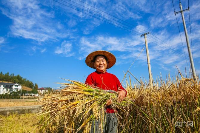 光明農(nóng)場700余畝稻田喜獲豐收(央廣網(wǎng)發(fā) 臨安區(qū)委宣傳部供圖)