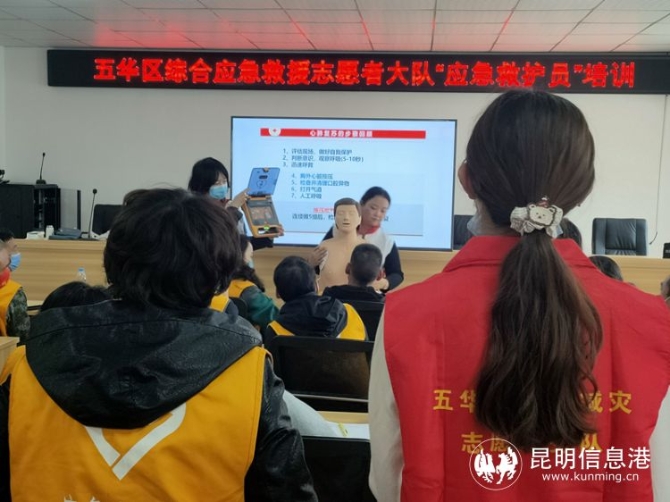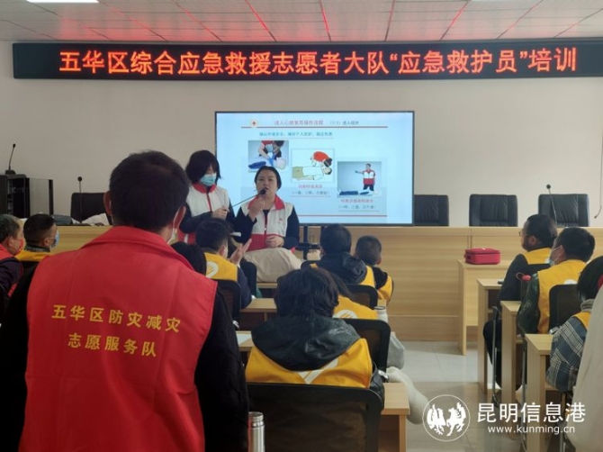 昆明信息港訊 通訊員于建 11月17日,五華區(qū)應(yīng)急管理局引導(dǎo)“五華區(qū)應(yīng)急救援志愿者大隊”組織開展“應(yīng)急救護(hù)員”培訓(xùn),主要培訓(xùn)心臟復(fù)蘇、包扎、燒燙傷處理等應(yīng)急救護(hù)知識及實操,并做了科目考核,此次培訓(xùn)旨在讓應(yīng)急救援員們掌握基本應(yīng)急救援知識,從而提高應(yīng)急救護(hù)能力。