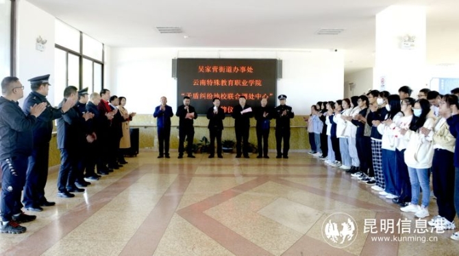 昆明信息港訊 記者段佳琪 為切實做好高校服務保障工作,全力打造高校片區(qū)和諧穩(wěn)定的社會環(huán)境,進一步健全矛盾糾紛地校聯(lián)合調(diào)解機制,11月19日,吳家營街道辦事處與云南特殊教育職業(yè)學院矛盾糾紛地校聯(lián)合調(diào)處中心揭牌儀式舉行。