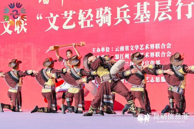 昆明信息港訊 記者甘凌菲 冬日的蘭坪陽光燦爛,蘭坪縣民族文化中心廣場上的陣陣掌聲和歡呼聲,溫暖而又熱烈。伴隨著鏗鏘有力的鼓聲,文藝慰問演出在舞蹈《問候鄉(xiāng)親》中拉開序幕......11月24日,云南省文聯(lián)“文藝輕騎兵基層行”系列活動走進(jìn)怒江州蘭坪縣,為當(dāng)?shù)匕傩斋I(xiàn)上了精彩紛呈的文藝盛宴。