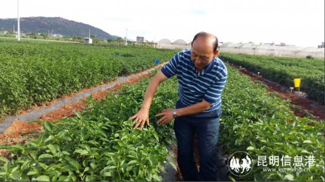 李全在昆明市農(nóng)科院宜良基地查看辣椒長勢 圖片由受訪者提供