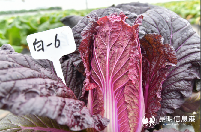 昆明市農(nóng)科院宜良基地展示的“紫裔”白菜 ?邱麗君/攝