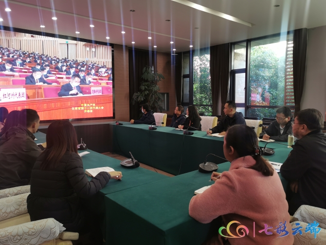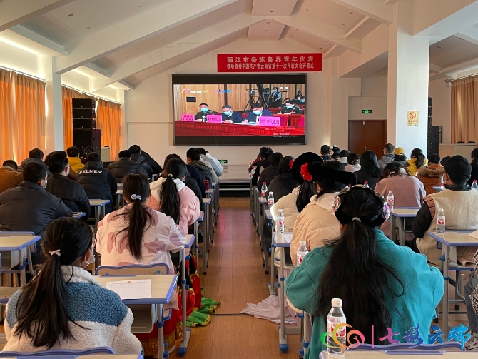 麗江市各族各界50余名青年代表收聽收看省第十一次黨代會開幕會。