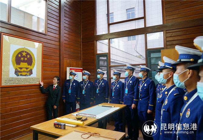 庭審結束后,全體指戰(zhàn)員在法院工作人員的帶領下,參觀了祿勸縣法治文化展館,了解祿勸縣人民法院基本情況、政法隊伍教育整頓情況、審判執(zhí)行工作流程、黨建文化、司法為民創(chuàng)新舉措等。