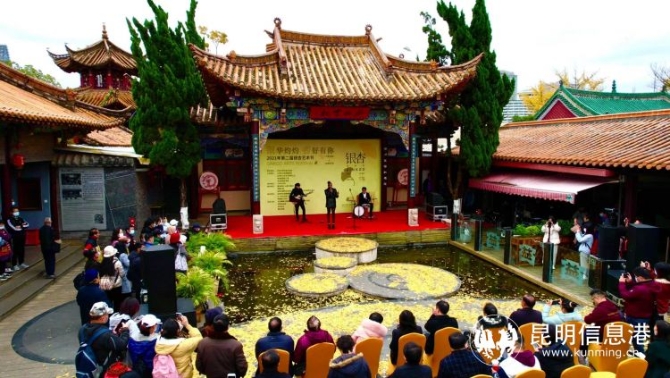昆明信息港訊 記者周永燁 11月30日上午,華山街道滿樹的銀杏用金黃的顏色向深秋致敬,為期一周的“銀華灼灼·杏好有你——2021年第二屆銀杏藝術(shù)節(jié)”在翠湖公園蓮華禪院正式拉開帷幕。