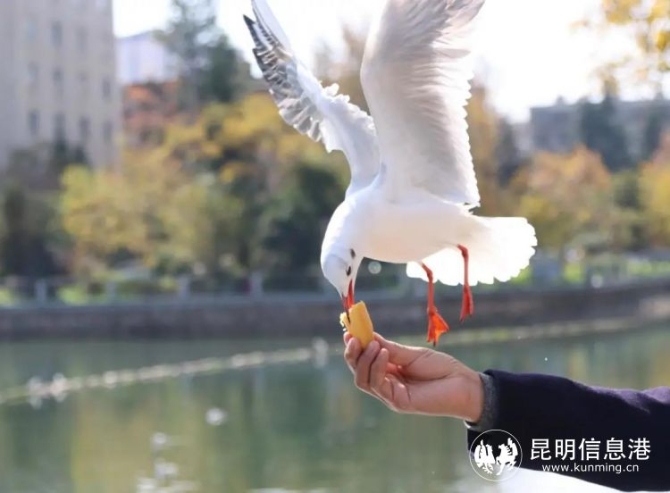 2007年,為改變投喂無序、營養(yǎng)不均的狀況,昆明市政府特?fù)艹?5萬元愛心款讓紅嘴鷗吃上免費(fèi)鷗糧。
