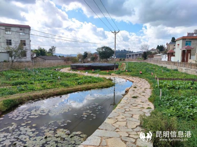 冬日暖陽下,來到朱家箐村小組,只見曾經(jīng)高低不平且雜亂的僵化土地,如今已蛻變成137塊大小均勻的生態(tài)菜園,中心位置被一個(gè)極為耀眼的“花卉五角星”所裝點(diǎn)。曾經(jīng)縱橫錯(cuò)雜的“污水溝”也已化身成一條階梯式瀑布河溝,里面長滿了睡蓮、茨菇和各種綠植,還有小魚、龍蝦、泥鰍在其中悠游著。當(dāng)您帶上家人來到這里,擼起褲腳,河溝便是孩子嬉戲的“樂土”,打撈上來的小魚小蝦統(tǒng)統(tǒng)可以免費(fèi)帶回家。