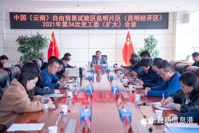 昆明信息港訊 記者茍廷廷 通訊員馮靖凱 12月3日,中國(guó)(云南)自貿(mào)區(qū)昆明片區(qū)(昆明經(jīng)開(kāi)區(qū))召開(kāi)2021年第34次黨工委(擴(kuò)大)會(huì)議,傳達(dá)學(xué)習(xí)云南省第十一次黨代會(huì)精神及昆明市領(lǐng)導(dǎo)干部大會(huì)精神,研究全區(qū)貫徹工作。中國(guó)(云南)自貿(mào)區(qū)昆明片區(qū)(昆明經(jīng)開(kāi)區(qū))管委會(huì)主任李河流主持并傳達(dá)會(huì)議精神。