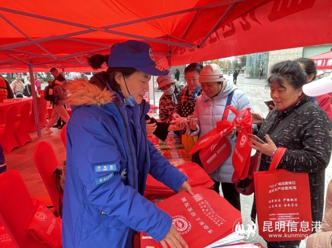 昆明信息港訊 記者龍泉積 12月3日,云南省2021年《憲法》《安全生產(chǎn)法》宣傳咨詢活動(dòng)在昆明市同德廣場舉行。盤龍區(qū)應(yīng)急管理局積極參與到此次活動(dòng),現(xiàn)場通過設(shè)立咨詢臺(tái)、展板展示、發(fā)放宣傳資料等形式為群眾答疑解惑,宣傳《憲法》《安全生產(chǎn)法》等法律法規(guī)、普及應(yīng)急救援知識(shí)、消防安全知識(shí)和防災(zāi)減災(zāi)等常識(shí)。