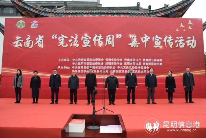 昆明信息港訊 記者李瑩 12月7日,云南省“憲法宣傳周”暨“青年普法志愿者法治文化基層行”集中宣傳活動在昆明宜良縣舉行。12支普法志愿服務(wù)隊、30余個法律宣傳展臺現(xiàn)場為宜良百姓提供種類豐富、覆蓋全面的法律法規(guī)宣傳咨詢服務(wù)。