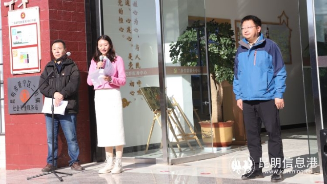 昆明市人社局黨組成員、副局長魯朝鳳(中)、昆明市人才市場管理辦主任渠淵(左)、晉寧區(qū)二街鎮(zhèn)黨委副書記、鎮(zhèn)長宋?。ㄓ遥?/span>