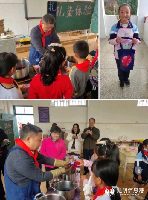 民進(jìn)昆明市委非公經(jīng)濟(jì)支部主委、省非遺傳承人楊成,當(dāng)天手把手地教小學(xué)生們學(xué)扎染,讓非遺文化走進(jìn)瓦恭鄉(xiāng)村小學(xué),讓山村少數(shù)民族孩子們?cè)诳鞓?lè)的體驗(yàn)中學(xué)習(xí)和感受到了非遺的魅力。