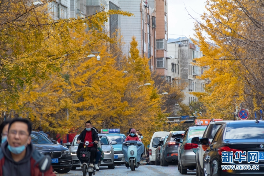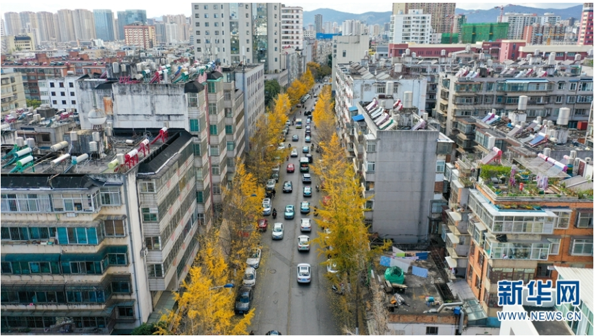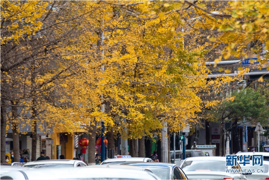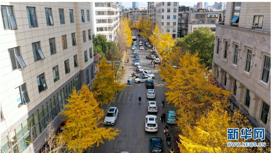 昆明文林街,銀杏飄金,美不勝收(攝于12月10日)。(新華網(wǎng) 李浩/攝)