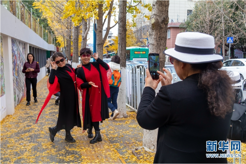 進入冬季以來,昆明多地銀杏飄金,為城市增添了一抹亮色,也引得市民和游客駐足觀賞。在位于翠湖附近的文林街,道路兩旁種植有120余棵銀杏樹,時下,樹樹金黃,文藝而浪漫。為留住美景,環(huán)衛(wèi)部門特地對該條街道實行“落葉不掃”。風吹葉落,半街銀杏滿地金,吸引眾多市民和游客前來觀賞留影。