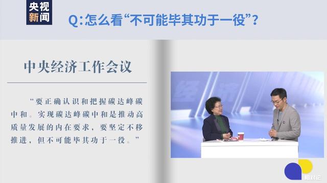 中國是一個(gè)負(fù)責(zé)任的大國,我們堅(jiān)定不移推進(jìn)碳達(dá)峰、碳中和工作,是為我們未來的發(fā)展,也為整個(gè)地球的生存環(huán)境。但是,會(huì)議提出“不可能畢其功于一役”,就是說這個(gè)目標(biāo)是到2060年,是40年要干的目標(biāo)。有些事情可以先快后慢,有些事情可以先慢后快,等質(zhì)量提高、結(jié)構(gòu)優(yōu)化了,產(chǎn)業(yè)結(jié)構(gòu)有了大的調(diào)整,碳排放自然就下來了。所以,不能把這40年的事集中到今年來干,或者是明年、最近幾年來干,特別是不能給我們的“穩(wěn)”造成很大的沖擊和影響。所以我覺得這一次的提法,非常準(zhǔn)確地抓住了問題的矛盾。