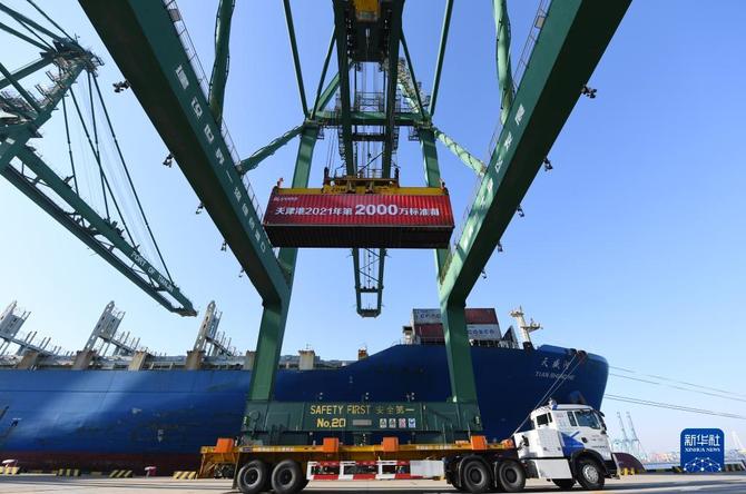 新華社天津12月18日電 記者王井懷 12月18日,天津港年集裝箱吞吐量首次突破2000萬(wàn)標(biāo)準(zhǔn)箱。天津港(集團(tuán))有限公司相關(guān)負(fù)責(zé)人認(rèn)為,這標(biāo)志著天津港集裝箱事業(yè)實(shí)現(xiàn)跨越式發(fā)展,服務(wù)國(guó)家戰(zhàn)略和區(qū)域經(jīng)濟(jì)發(fā)展的能力持續(xù)增強(qiáng)。