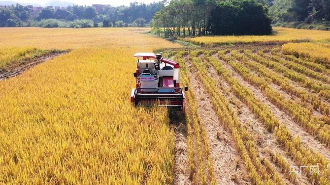 11月底,當(dāng)北方已是寒風(fēng)料峭冬意濃,珠三角的田間卻是另一派景象:稻穗將大地染成金黃,構(gòu)成了一幅絢麗的秋收畫卷。