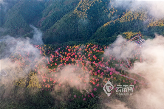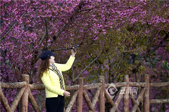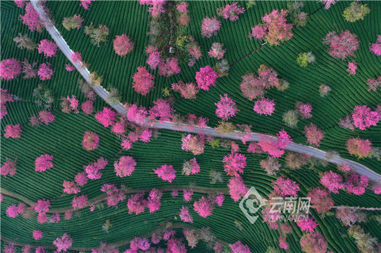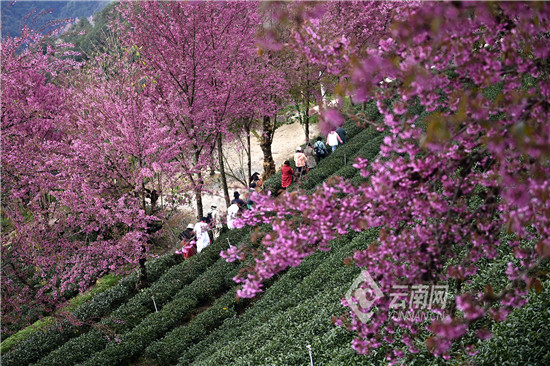 連日來,在位于云南省西部的南澗彝族自治縣無量山深處的櫻花谷,絢爛的冬櫻花爭奇斗艷,搖曳生姿。粉紅色的花,白色的云霧,綠色的茶園,構成彩云之南冬日里一道美麗的風景。