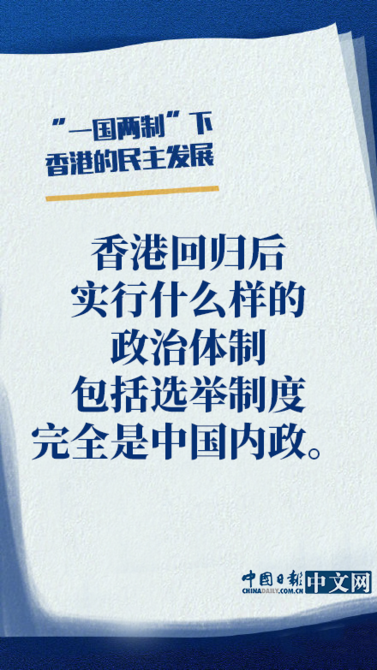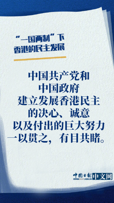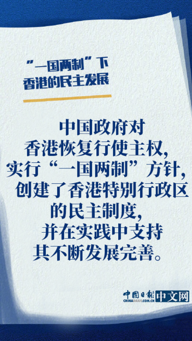 國(guó)務(wù)院新聞辦公室20日發(fā)表《“一國(guó)兩制”下香港的民主發(fā)展》白皮書(shū)。白皮書(shū)指出,香港在英國(guó)殖民統(tǒng)治下沒(méi)有民主可言。中國(guó)政府對(duì)香港恢復(fù)行使主權(quán),實(shí)行“一國(guó)兩制”方針,創(chuàng)建了香港特別行政區(qū)的民主制度,并在實(shí)踐中支持其不斷發(fā)展完善。