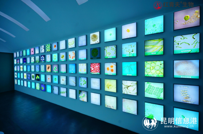 據(jù)介紹,微藻科普館占地總面積4000余平方米,建筑面積1400平方米,館內(nèi)設(shè)有兩大基本展示區(qū)、十二個專題展區(qū)、一個模型展示區(qū)、一個科普影視放映區(qū)。科普館整體規(guī)劃主要分為兩個發(fā)展階段,第一階段以微藻信息展示內(nèi)容為主,多媒體數(shù)字互動,來展現(xiàn)微藻產(chǎn)業(yè)前景及成果,并呈現(xiàn)以雨生紅球藻為代表的產(chǎn)品應(yīng)用價值;第二階段規(guī)劃以微藻科技融合“數(shù)字+智慧”,通過物聯(lián)網(wǎng)、大數(shù)據(jù)、云計算等技術(shù),建立“物—人”“物—數(shù)據(jù)”“人—數(shù)據(jù)”之間的信息交互和遠(yuǎn)程控制,構(gòu)建微藻科普大數(shù)據(jù)中心,實現(xiàn)數(shù)字化保護(hù)、宣傳教育、陳列展覽、多媒體互動展示等的智能化優(yōu)化模式,呈現(xiàn)智慧化的全面融合。