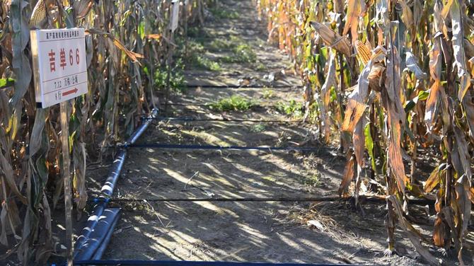 圖為吉林省乾安縣大遐農(nóng)場田間滴灌設(shè)備,每公頃平均增產(chǎn)30%。(新華社記者徐子恒攝)