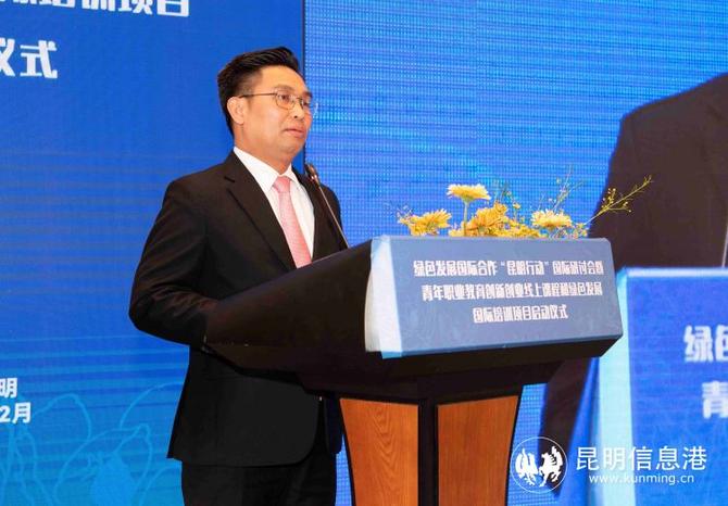 昆明信息港訊 記者茍廷廷 通訊員馮靖凱 12月20日,由昆明市人民政府主辦,昆明市人民政府外事辦公室與中國(云南)自貿(mào)區(qū)昆明片區(qū)(昆明經(jīng)開區(qū))共同承辦的“綠色發(fā)展國際合作‘昆明行動’國際研討會暨青年職業(yè)教育創(chuàng)新創(chuàng)業(yè)線上課程和綠色發(fā)展國際培訓(xùn)項目啟動儀式”在自貿(mào)區(qū)昆明片區(qū)舉行。