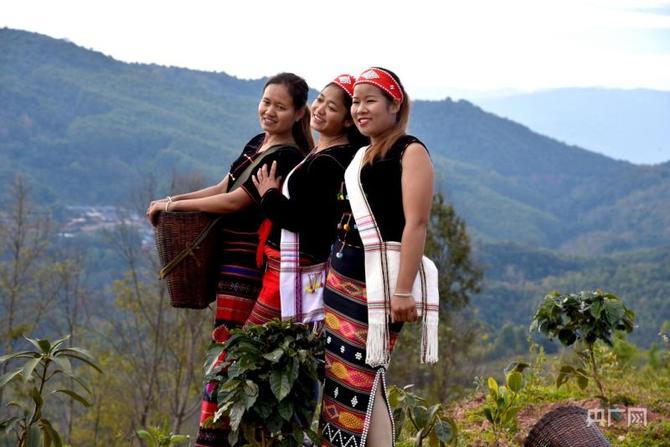 在田野,在山地,在沉甸甸的枝頭,在層層疊疊的綠葉下,在輕輕撫過的指縫間。一顆顆飽滿鮮艷的咖啡鮮果,被風(fēng)吹起,陽光下流動(dòng)的紅色,愈加映紅了佤族阿姐的臉龐。