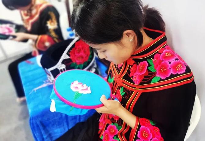 從2020年5月至今,在上海國際機(jī)場股份有限公司的幫扶下,南華七彩彝州工藝品刺繡加工廠先后在南華縣多個鄉(xiāng)鎮(zhèn)建立了6個“上海國際機(jī)場助力南華彝繡產(chǎn)業(yè)扶貧車間”,合計用工2028人,其中包括建檔立卡貧困戶婦女579人,殘疾人78人。今年1至10月帶動群眾增收1100萬元,企業(yè)獲利110萬元。