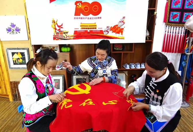 南華七彩彝州工藝品刺繡加工廠依托扶貧車間,積極帶動農(nóng)村留守婦女和殘疾人投入到南華鄉(xiāng)村振興產(chǎn)業(yè)中來,采取記件的方式計算報酬,工人可選擇與加工廠簽訂用工合同,集中在扶貧車間刺繡,也可選擇與加工廠簽訂刺繡訂單,利用閑暇時間在家中完成刺繡后將成品交回,極大促進(jìn)了農(nóng)村貧困婦女在家門口實現(xiàn)就業(yè)及家庭增收。繡娘的平均月收入達(dá)到3100元。目前,除了銷往北京、上海、青島等地外,公司生產(chǎn)的掛畫、手包、錢夾、毛衣墜、鑰匙扣等繡品遠(yuǎn)銷法國、澳大利亞等國家,深受不同群體的喜愛。