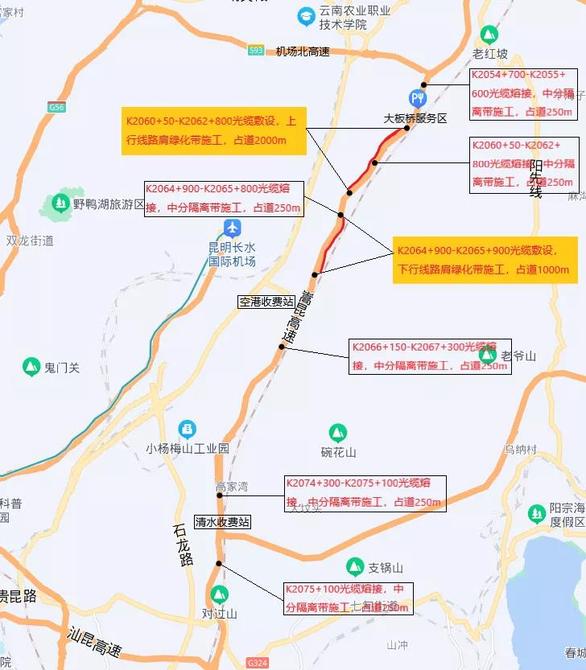 1.臨時(shí)占用嵩昆高速(清水收費(fèi)站至大板橋服務(wù)區(qū))部分路段應(yīng)急車(chē)道(上行線約2000米,下行線約1000米)進(jìn)行新建光纜工程施工,施工期間確保嵩昆高速行車(chē)道的正常通行。