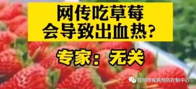 12月22日,昆明市疾控中心也針對吃草莓是否會感染出血熱等網(wǎng)友關(guān)心的問題進行辟謠。