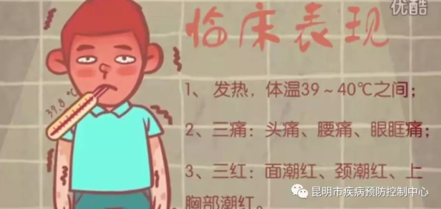 答:早期典型癥狀是發(fā)熱+三紅三痛。
