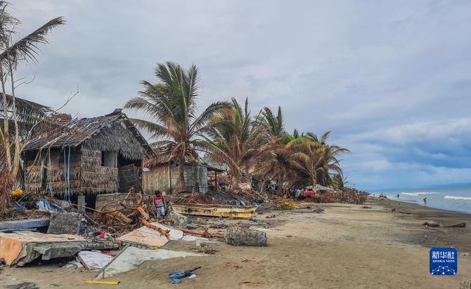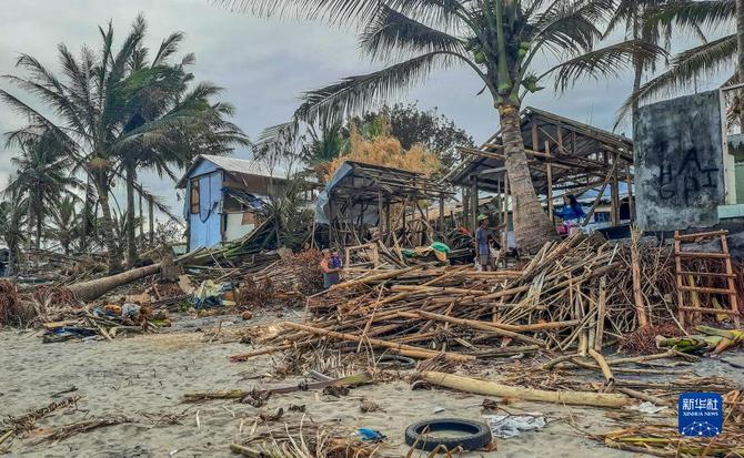 這是12月22日在菲律賓萊特省拍攝的一個沿海漁村的受災情況。(新華社發(fā) 菲律賓TV5/供圖)