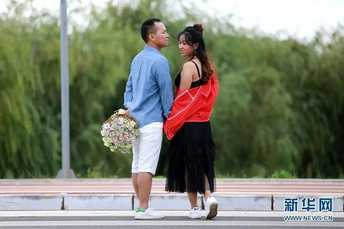 在環(huán)湖南路拍照的情侶