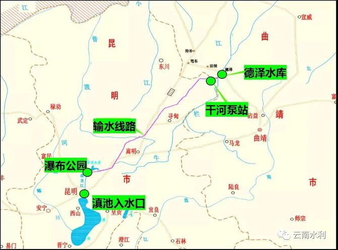 牛欄江—滇池補水工程位于曲靖市和昆明市境內(nèi),是一項水資源綜合利用工程,是滇中調(diào)水的近期重點工程,主要由德澤水庫樞紐、干河泵站和輸水線路工程組成,工程等別為Ⅱ等。工程設(shè)計引水量為5.72億立方米/年,多年平均引水量為5.66億立方米,其中枯期引水2.47億立方米,占總引水量的43.2%,供水保證率為70%,下游生態(tài)用水7.02億立方米。
