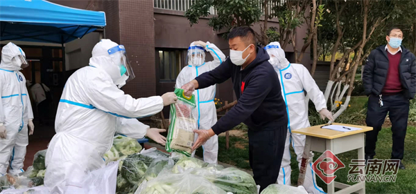為切實(shí)保障小區(qū)居民的生活,昆明市呈貢區(qū)各部門積極行動(dòng),通過(guò)多措并舉,安排了食品配送企業(yè)負(fù)責(zé)對(duì)封控區(qū)和管控區(qū)居民提供相關(guān)的生活物資,物資抵達(dá)后,由黨員志愿者進(jìn)行物資分配后,再移交給社區(qū)和物業(yè)的工作人員把生活物資配送到每家每戶。