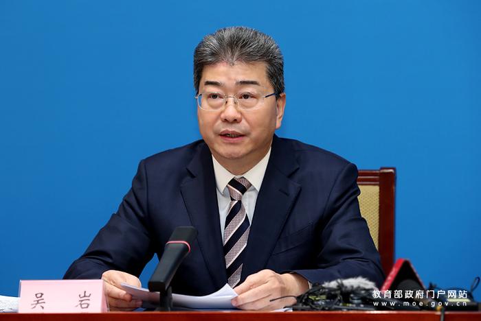 教育部高等教育司司長(zhǎng)吳巖介紹振興中西部高等教育總體情況。 (中國教育報(bào)記者 張勁松/攝)