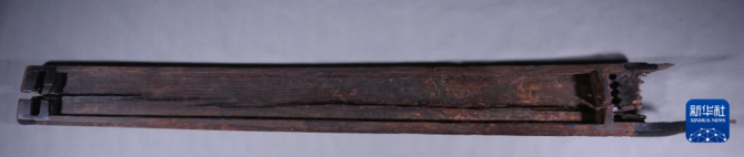 墓葬因早期盜擾破壞嚴重,目前出土了2600余件(套)器物。器物種類以漆木器為大宗,此外還有金屬器、陶瓷器和玉石器等。從器類看,囊括了禮器、樂器、兵器、車馬器、日常用具等多種品類。墓中出土了一件總長度達到2.3米的箏,是先秦時期墓葬中發(fā)現(xiàn)的最長的一件箏。兵器有戈、戟、劍、鏃、漆木盾等,其中漆盾有30余面。出土的青銅鳩杖跽坐人形鐓以往只見于長江下游的吳越文化區(qū)。兩件銘銅戈(戟)上有銘文。