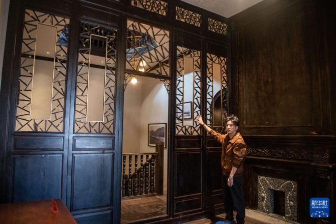 12月22日,工作人員在介紹立德樂洋行舊址內(nèi)部細(xì)節(jié)的修繕情況。