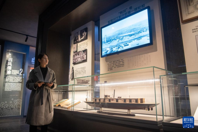 12月22日,在由立德樂洋行倉(cāng)庫(kù)舊址改建的重慶開埠歷史陳列館內(nèi),講解員在熟悉播放設(shè)備。