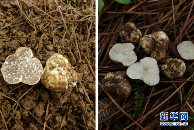 除植物新種外,作為“野生菌王國”的云南,今年以來也發(fā)現(xiàn)了不少真菌新種,松露塊菌、曲靖塊菌就是其中兩個(gè)。塊菌隸屬盤菌目、塊菌科,常被我國西南各地百姓叫做 “豬拱菌”,商業(yè)上則多稱為松露?!俺载洝笨赡苋滩蛔∫獑?,“本次發(fā)現(xiàn)的兩個(gè)新種可以吃嗎?”據(jù)科研工作者介紹,松露塊菌和曲靖塊菌不僅能食用,還潛藏著不小的經(jīng)濟(jì)價(jià)值。圖為拼版圖片,左圖為松露塊菌、右圖為曲靖塊菌(資料圖片)。新華網(wǎng)發(fā)(萬山平 攝)
