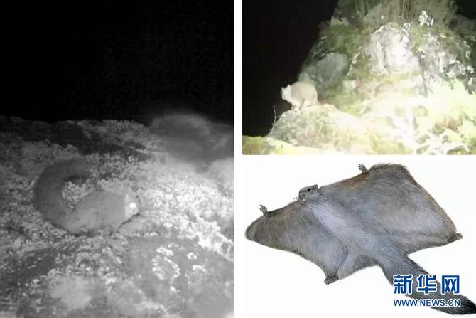 雪山羊絨鼯鼠,羊絨鼯鼠屬新種,發(fā)現(xiàn)于云南省怒江州貢山縣。雖然是羊絨鼯鼠,但網(wǎng)友們卻稱其為“雪山飛狐”,這是為什么呢?據(jù)悉,鼯鼠是一種夜行動(dòng)物,可在大樹和懸崖間滑翔,民間不少群眾將其稱為“飛狐”,加之這一新物種的棲息地有半年時(shí)間都被積雪覆蓋,故而被稱為“雪山飛狐”。圖為拼版圖片,分別為監(jiān)控?cái)z像頭拍攝到的雪山羊絨鼯鼠、手繪雪山羊絨鼯鼠(資料圖片)。新華網(wǎng)發(fā)(高黎貢山國家級(jí)自然保護(hù)區(qū) 供圖)