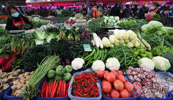 元旦假日,昆明各大農貿市場蔬菜肉蛋及糧油副食等生活物資供應充滿,價格平穩(wěn),市場秩序良好。