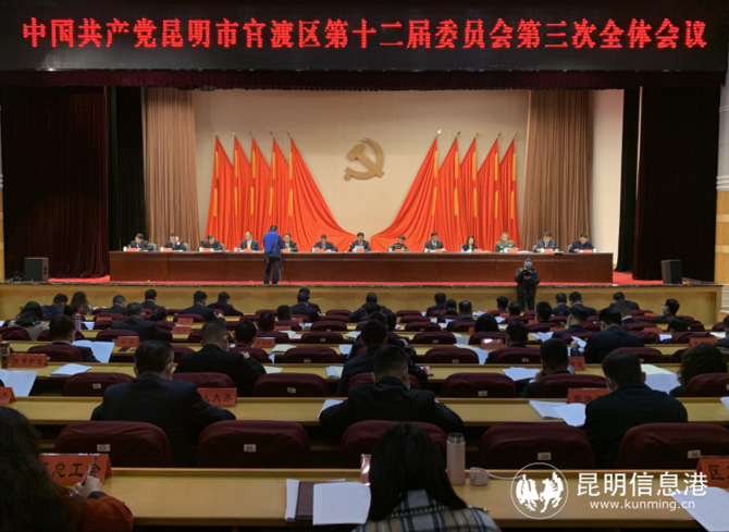 昆明信息港訊 記者龍泉積 1月5日,中國共產(chǎn)黨昆明市官渡區(qū)第十二屆委員會第三次全體會議在官渡大酒店召開。會議回顧2021年工作,分析發(fā)展形勢,研究部署2022年主要任務,團結(jié)動員全區(qū)廣大黨員干部群眾,堅定高質(zhì)量建設(shè)昆明城市新中心步伐,以奮進姿態(tài)喜迎黨的二十大勝利召開。