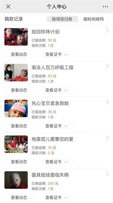 撿回珍珠計(jì)劃、漸凍人百萬(wàn)呼吸工程、先心寶貝緊急救助、地震孤兒需要您的愛(ài)……打開(kāi)騰訊公益,昆明的楊小姐查看自己參與捐贈(zèng)的公益項(xiàng)目進(jìn)展情況。目前,她通過(guò)這個(gè)平臺(tái)捐款409元。