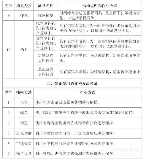 附件:云南省長江流域禁捕水域禁止使用的漁具和捕撈方法名錄