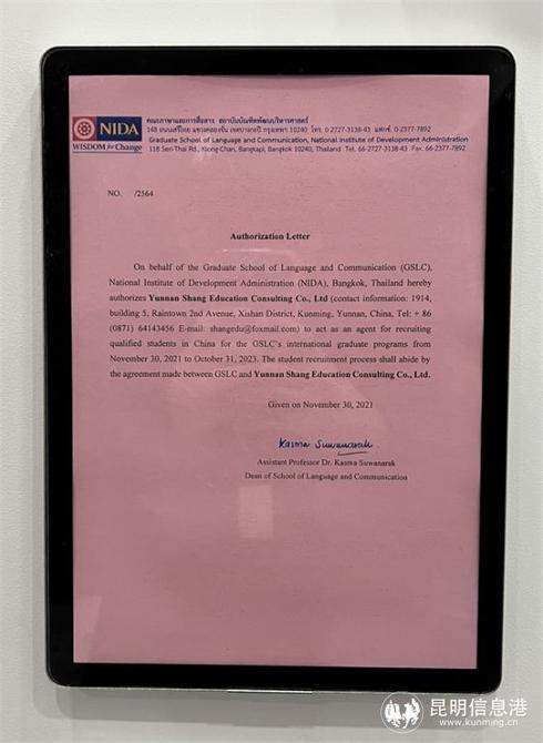 昆明信息港訊 1月5日下午,云南學(xué)子尚教育咨詢(xún)有限公司(下稱(chēng):學(xué)子尚教育)與泰國(guó)國(guó)立發(fā)展管理學(xué)院(National Institute of Development Administration,簡(jiǎn)稱(chēng):NIDA)語(yǔ)言與傳播學(xué)院舉行線上合作簽約儀式。