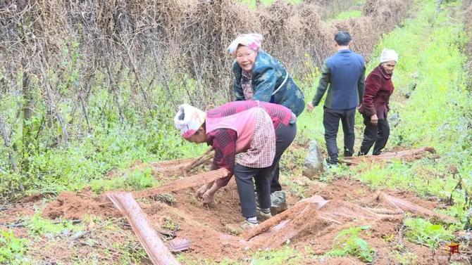 近段時(shí)間,芭蕉塘村的村民們格外忙碌,大家都在地里挖山藥。只見他們將手伸進(jìn)土坑里,突然一發(fā)力,一根近1米長(zhǎng)的山藥就出土了。