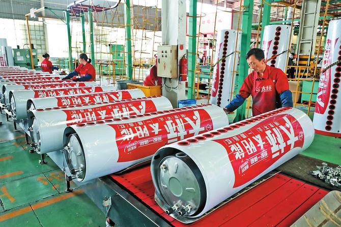 圖為玉溪市研和工業(yè)園區(qū)太標(biāo)集團(tuán)太陽(yáng)能熱水器生產(chǎn)車間。