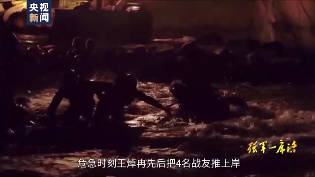 渡河途中,河水突然上漲,不斷有戰(zhàn)友滑倒,被沖向下游。危急時(shí)刻,王焯冉先后把4名戰(zhàn)友推上岸,他的雙腿卻被河底的石頭死死卡住,加上體力不支,被淹沒在水中,獻(xiàn)出了寶貴生命。